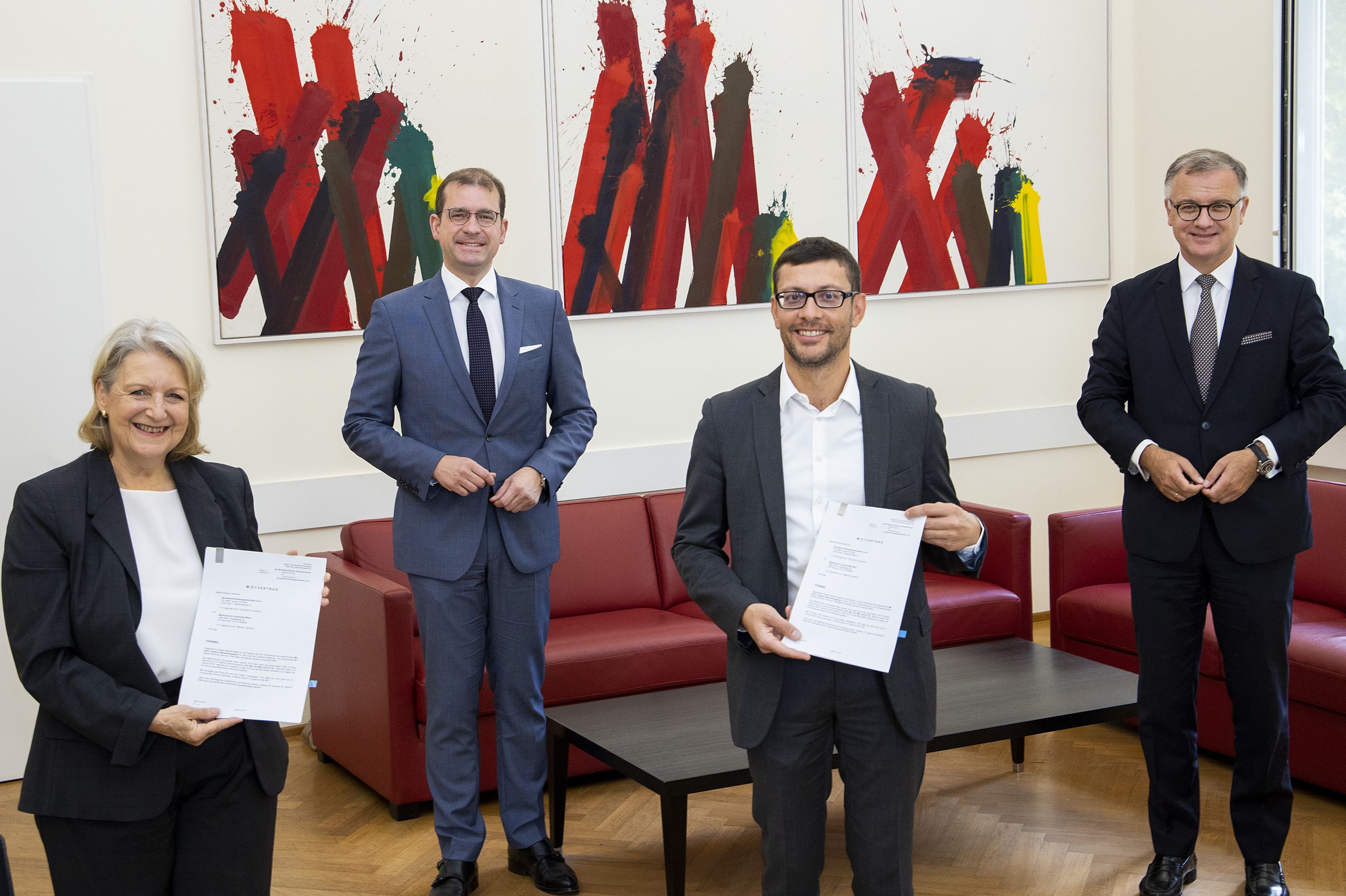 (Vienna, 11 September 2020) With a floor area of around 35,000 m², the Mariannengasse MedUni Campus will provide a modern facility for medical teaching and research. Rector Markus Müller and BIG CEO Hans-Peter Weiss have now signed the tenancy agreement , prior to commencement of the construction work in the autumn. The tenancy agreement was signed at MedUni Vienna on 11 September.