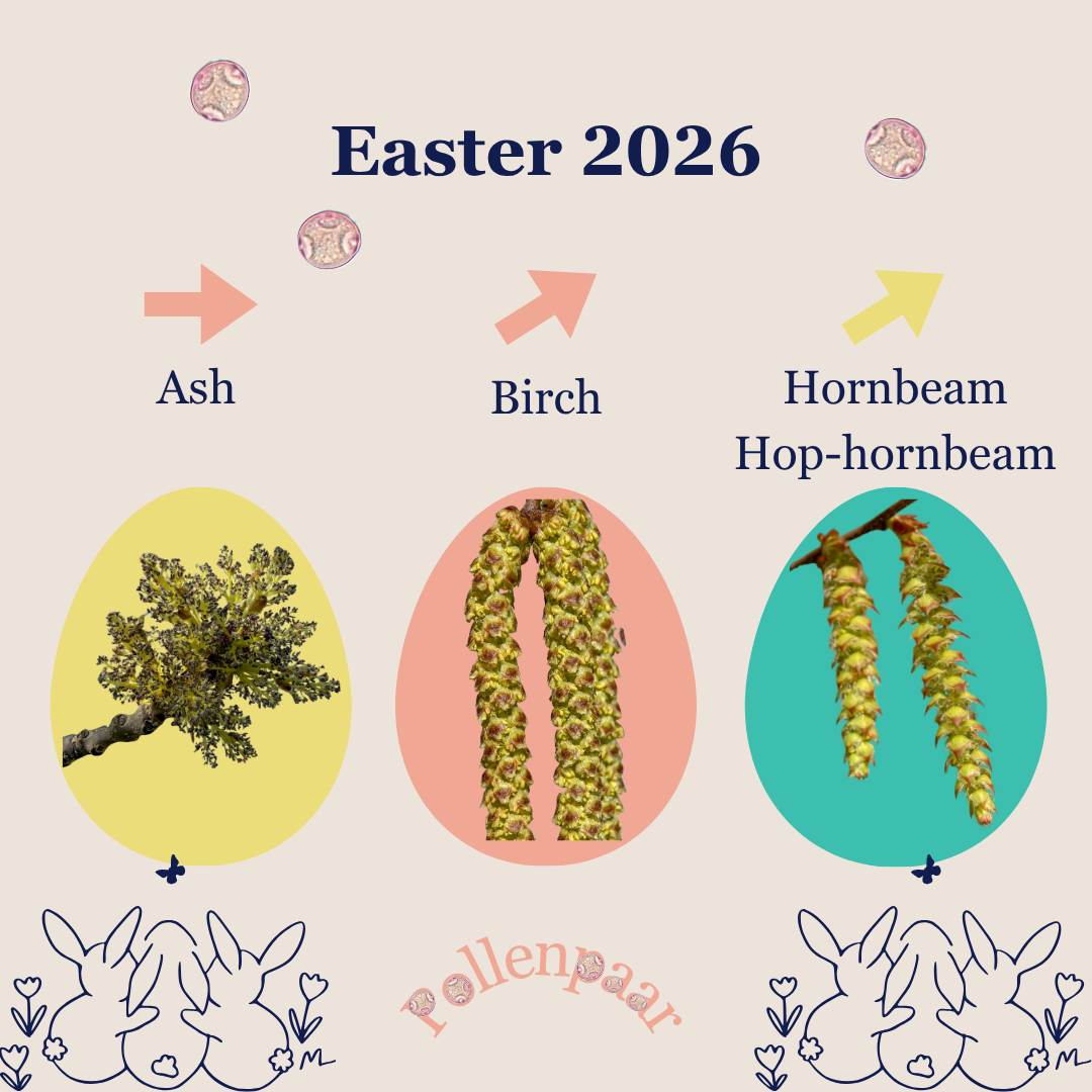 Over the Easter weekend, birch pollen has to be expected. Birches are in full flower and the weather provides good conditions for pollination. The flower of other members of the birch family (hornbeam and hop hornbeam) causes also increasing pollination.