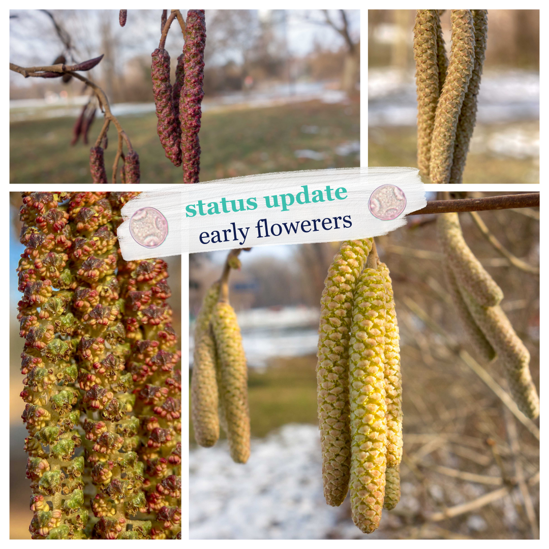 The early flowerers had to wait this year and an early start like in the last years was not possible. First hazel individuals are ready to flower and first pollen grains were recorded in the air samples in the beginning of this week. However, the weather situation for the next days will prevent pollen release and delay the start of the main pollination period.