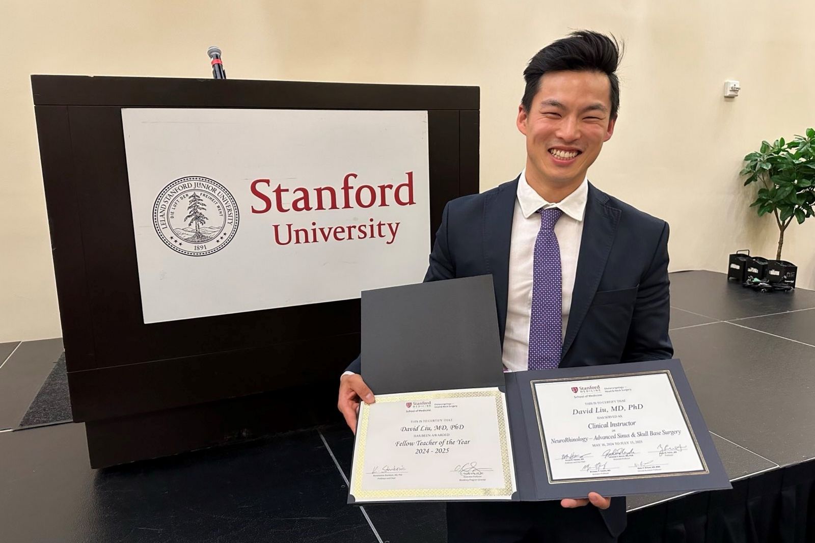 (Stanford/Vienna, 20 June 2025) David Liu, Lecturer in Otolaryngology - Head and Neck Surgery at MedUni Vienna and currently a Clinical Fellow at Stanford University (USA), has been recognized by Stanford as Fellow Teacher of the Year 2024-2025.