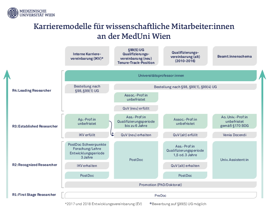 Die Möglichkeiten für eine dynamische wissenschaftliche Karriere an der MedUni teilen sich in zwei Bereiche: