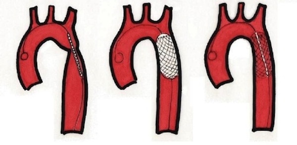 Bei älteren Kindern und Jugendlichen gibt es auch die Möglichkeit ohne Herzoperation im Rahmen eines Herzkathetereingriffs eine Ballondilatation der Aortenisthmusstenose durchzuführen. Diese Technik wird als Standard-therapie angewendet, wenn es nach einer Operation im Bereich der Nahtstelle wieder zu einer Verengung kommt. Patienten bei denen eine Ballondilatation alleine nicht ausreicht oder eine Wandschwäche der Körperschlagader besteht kann der „kranke“ Aortenisthmus mit einer Gefäss-Stütze dauerhaft offen gehalten werden (Stentimplantation).