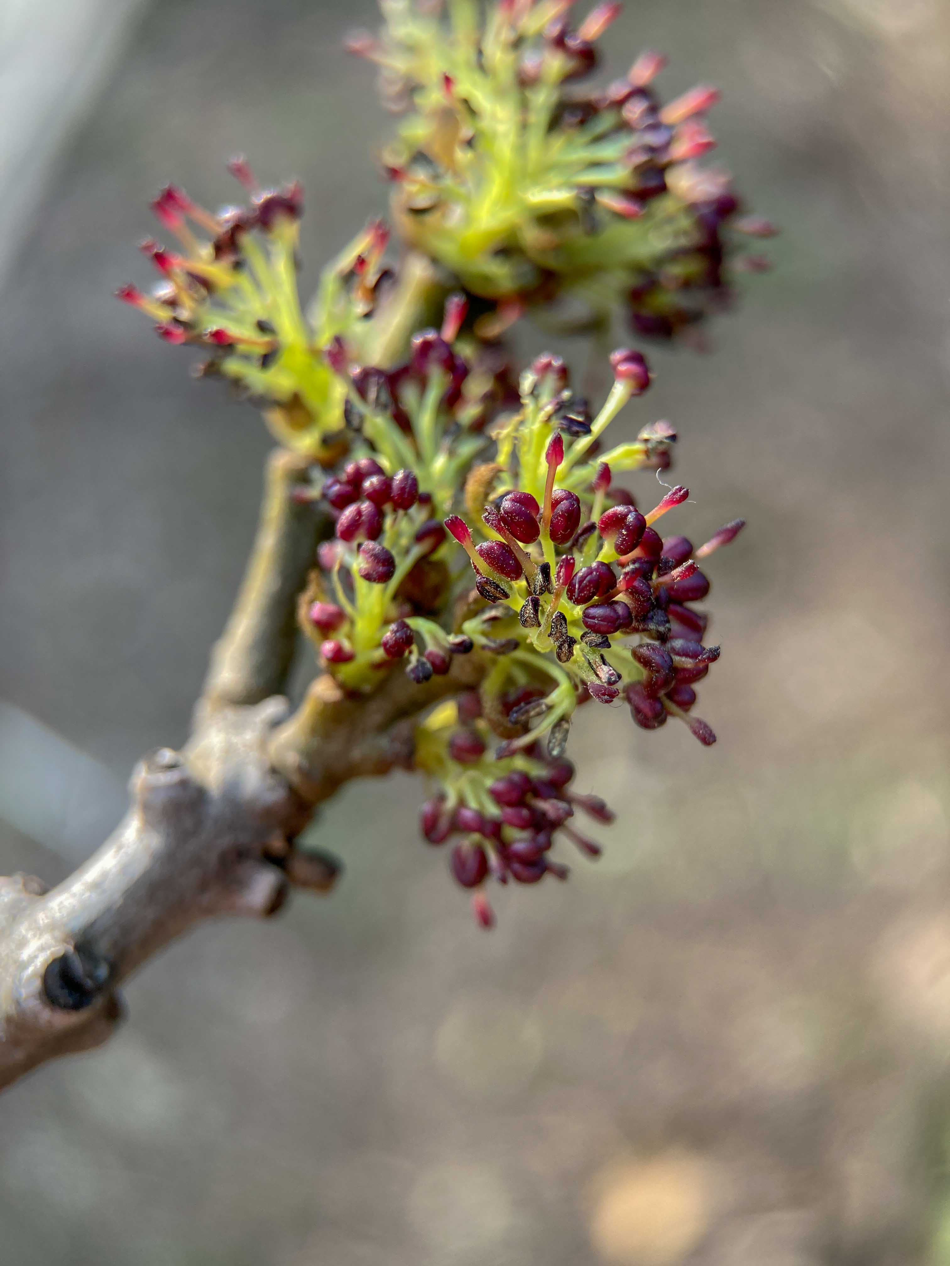 Einzelne Eschen sind in Vollblüte übergegangen (siehe Abbildung). Der Pollenflug ist dementsprechend deutlich angestiegen. Dennoch befinden wir uns erst am Beginn der Eschenpollensaison, da die Mehrheit der Eschen noch nicht zu blühen begonnen hat.