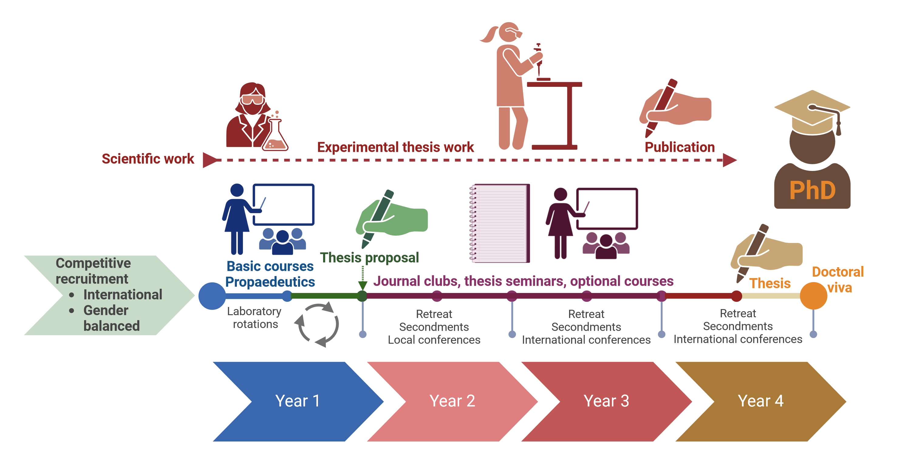 Die Doktorand:innen haben individuelle Projekte, die unter der direkten Aufsicht eines Fakultätsmitglieds durchgeführt werden. Durch die Durchführung des Projekts erwerben die Doktorand:innen sowohl tiefgreifende Kenntnisse als auch theoretisches Wissen in der medizinisch-immunologischen Forschung.