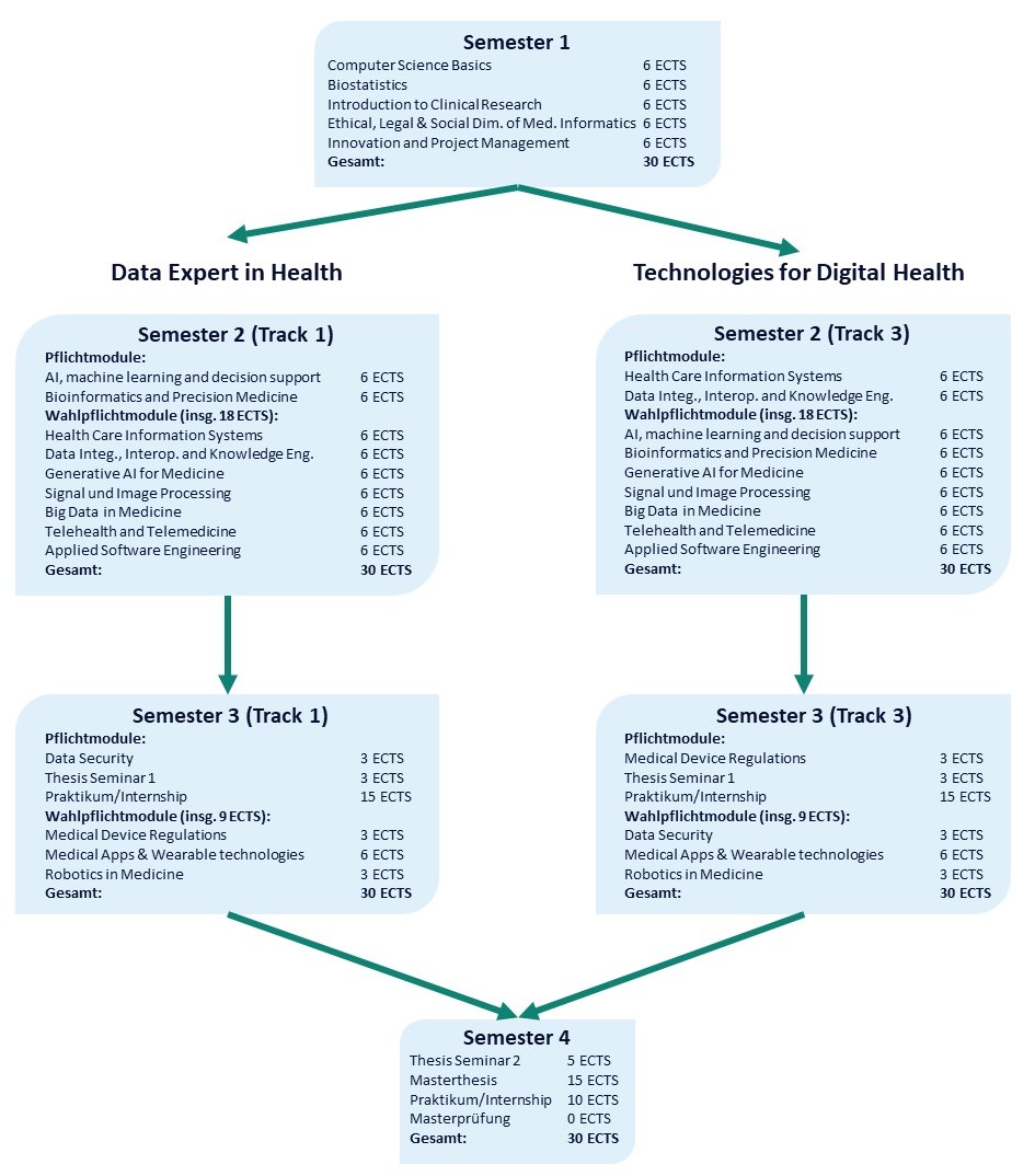 Beim Start im Wintersemester 2025/26 wird nur der Strang "Technologies for digital health" angeboten.