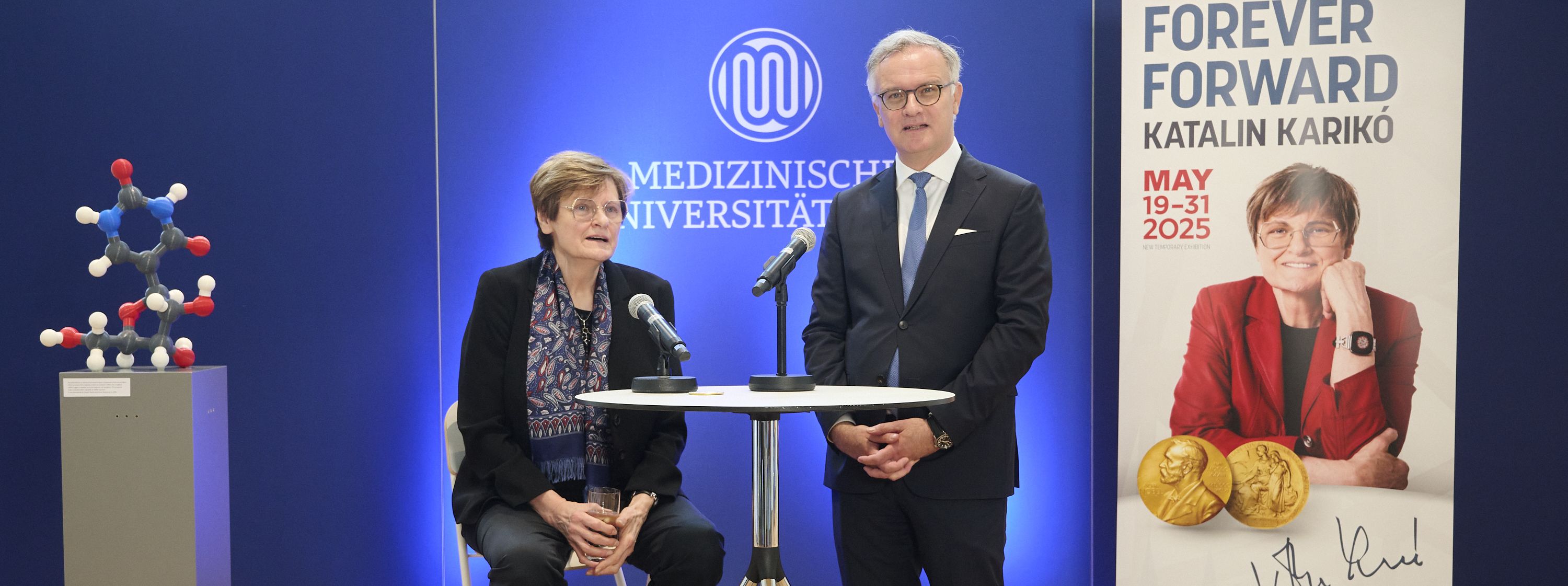 Wir freuen uns mit Katalin Karikó eine Pionierin der Medizin an der MedUni Wien begrüßen zu dürfen“, sagte Markus Müller, Rektor der MedUni Wien. „Katalin Karikós Forschung an mRNA hat die Medizin grundlegend verändert. Ihre Erkenntnisse eröffnen völlig neue Möglichkeiten für die Behandlung von Krankheiten wie Krebs oder seltenen genetischen Störungen und bilden die Grundlage für eine neue Ära der personalisierten Medizin.“