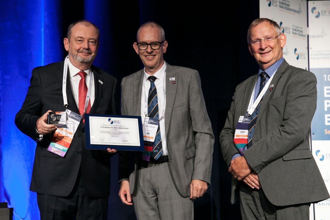 Hans Georg Kress erhielt diese ehrenvolle und selten vergebene Auszeichnung für seine internationalen Verdienste um die Schmerzmedizin in Europa, insbesondere auch für die Förderung der klinischen Schmerzforschung, der öffentlichen Wahrnehmung der Schmerzmedizin und ihrer Entwicklung zu einer anerkannten Fachdisziplin.