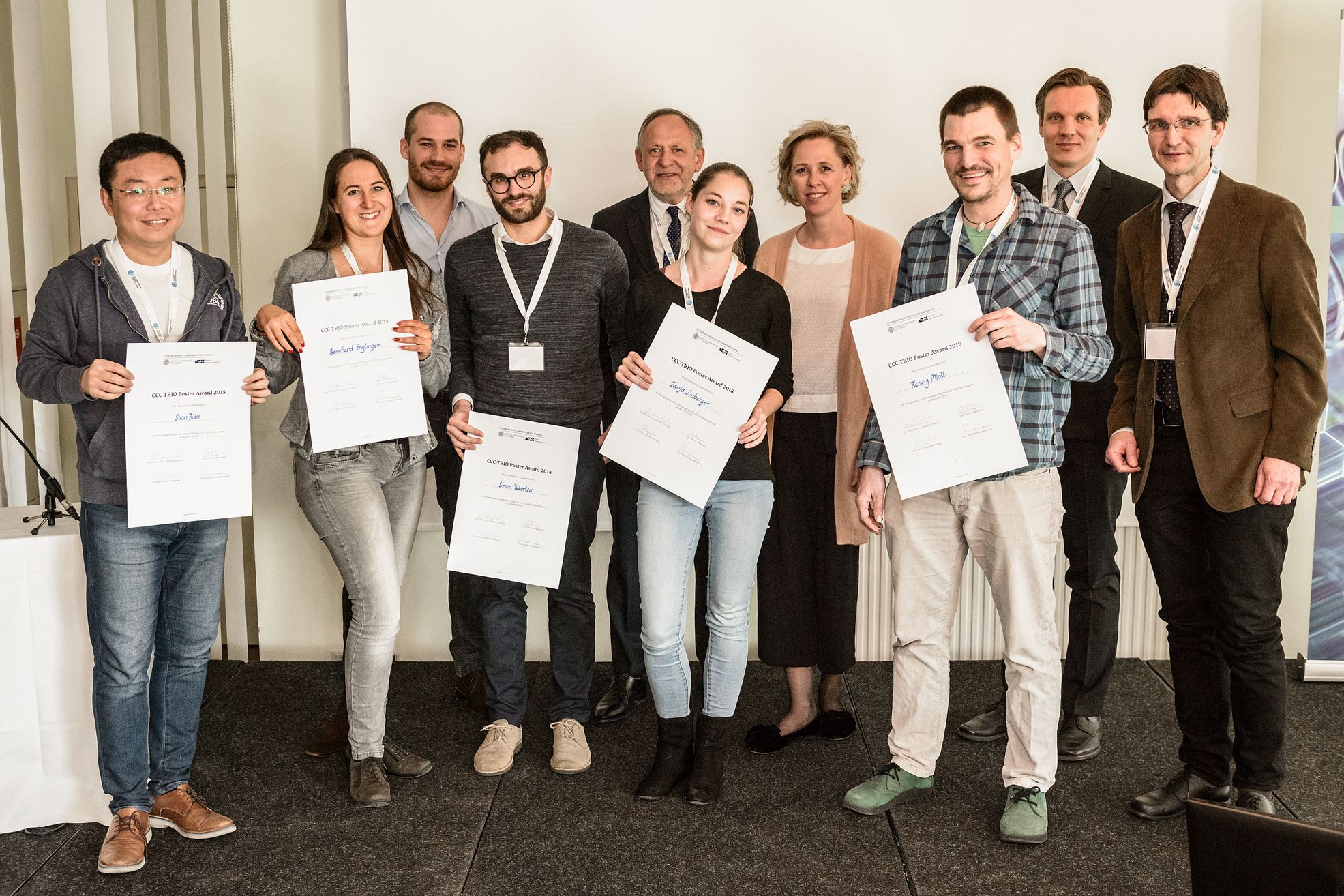 (Wien, 24-04-2018) Anlässlich des CCC-Poster Awards, der im Rahmen des CCC-TRIO Symposiums am 6./7. April 2018 vergeben wurde, verlieh das Comprehensive Cancer Center Vienna (CCC) insgesamt 10.000 Euro an sechs herausragende Forschungsarbeiten im Bereich der translationalen Krebsforschung. Die Preisgelder sind der onkologischen Krebsforschung gewidmet und sind zur Durchführung von weiteren Forschungsarbeiten bestimmt.