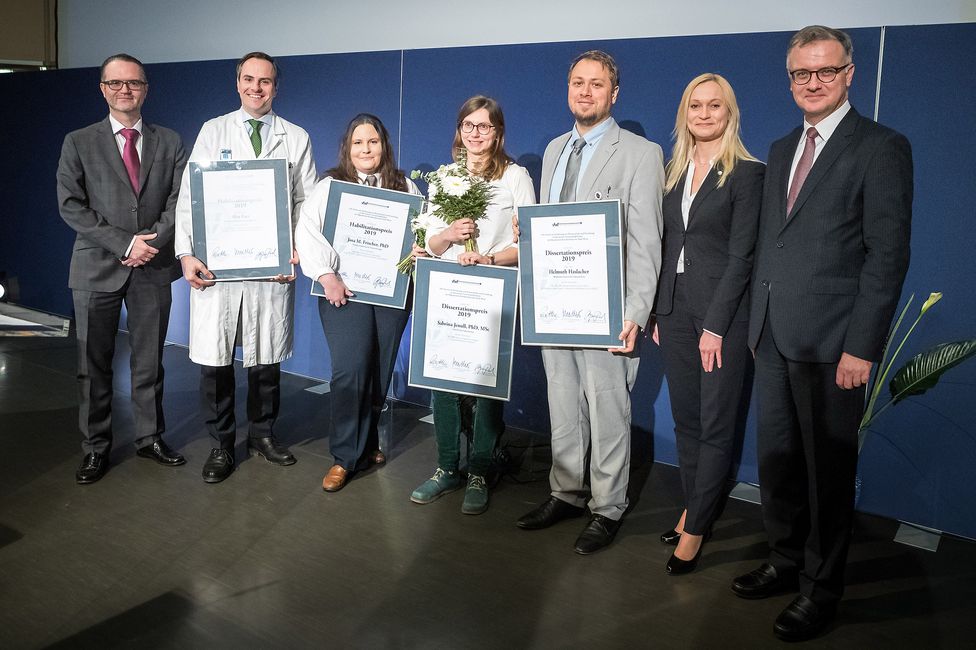 Im Rahmen der Veranstaltung vergab der vfwf (Verein zur Förderung von Wissenschaft und Forschung) Wissenschaftspreise für die besten Dissertationen und Habilitationen des Jahres 2018 an Sabrina Jenull (Max F. Perutz Laboratories/“The HIR histone chaperone complex in Candida albicans virulence”), Helmuth Haslacher (Klinisches Institut für Labormedizin/“The effect of endurance sports on the validity of blood-born predictors for depression and diabetes in the elderly”), Josa M. Frischer (Universitätsklinik für Neurochirurgie/“Applying Gamma Knife radiosurgery as an effective treatment option in modern neurosurgery”) und Alex Farr (Universitätsklinik für Frauenheilkunde/“The influence of the vaginal flora in early pregnancy on preterm delivery and obstetrical outcomes”).