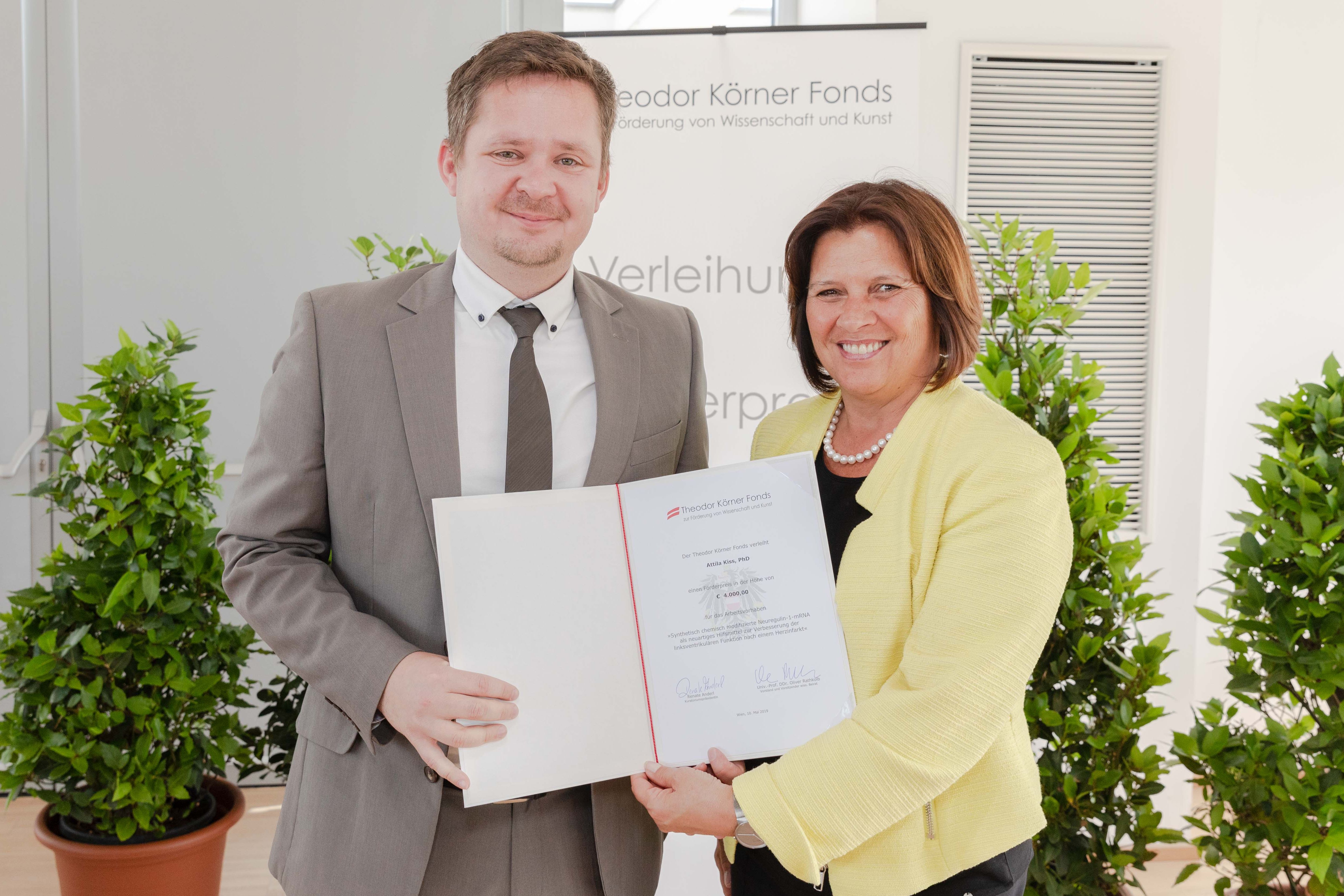 (Wien, 16-05-2019) Attila Kiss vom Zentrum für Biomedizinische Forschung der MedUni Wien wurde mit dem Theodor Körner Förderpreis in der Kategorie Medizin, Naturwissenschaften und Technik ausgezeichnet. Dieser Preis zur Förderung von NachwuchsforscherInnen unterstützt eine präklinische Studie zur Behandlung von Herzinsuffizienz.